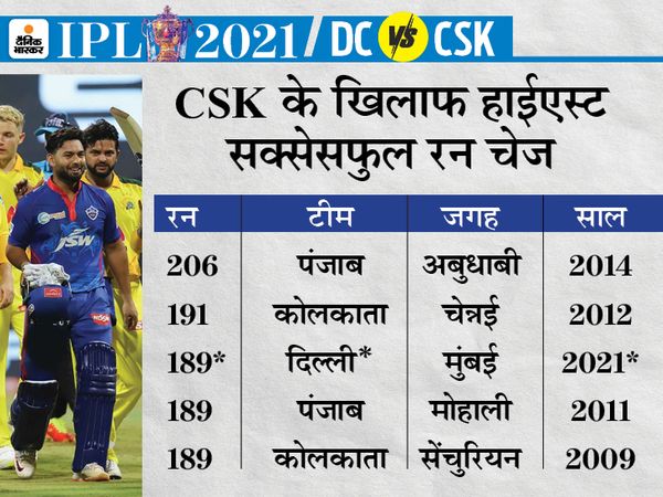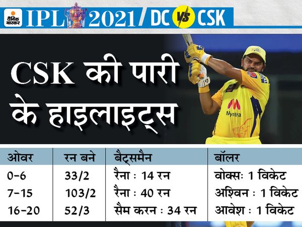 सैम करन की 15 गेंदों पर 34 रनों की पारी के दम पर चेन्नई की टीम 188 रन तक पहुंच गई, लेकिन इसके बाद दिल्ली के ओपनर पृथ्वी शॉ और शिखर धवन के तूफान में यह स्कोर काफी छोटा पड़ गया। शॉ ने 38 गेंद पर 72 रन बना दिए। वहीं, धवन ने 54 गेंदों पर 85 रनों की पारी खेली। ये दोनों जब तक आउट हुए दिल्ली की जीत लगभग तय हो चुकी थी।